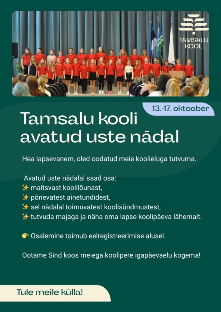 Lapsevanemate avatud uste nädal Tamsalu Koolis 13.–17. oktoober 2025.
