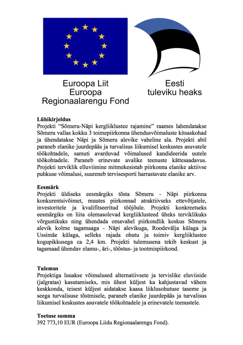 Projekti nimetus: “Sõmeru aleviku elukeskkonna kaasajastamine”